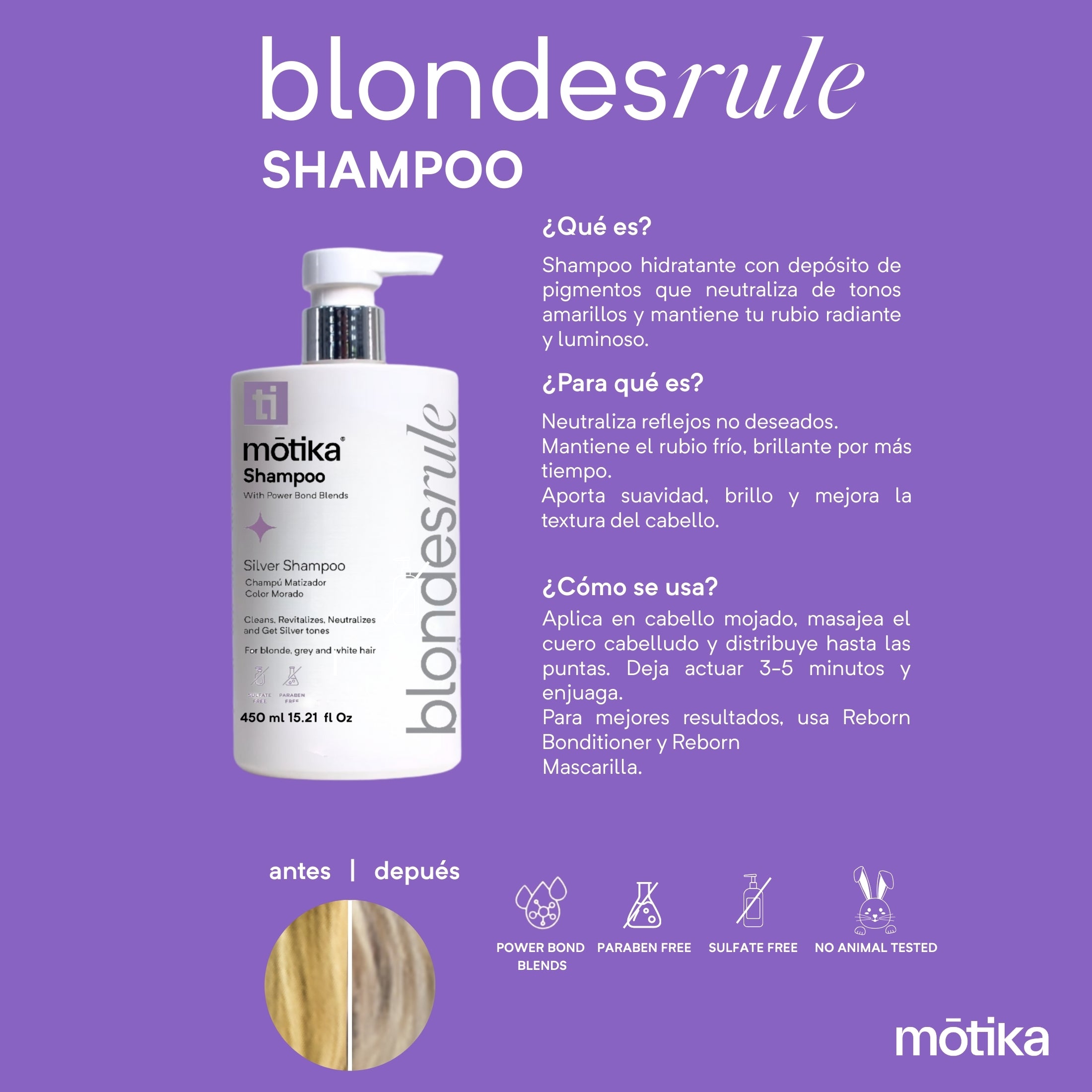 Con Blondesrule Shampoo, neutraliza los tonos amarillos y luce un rubio luminoso que solo tú puedes tener.