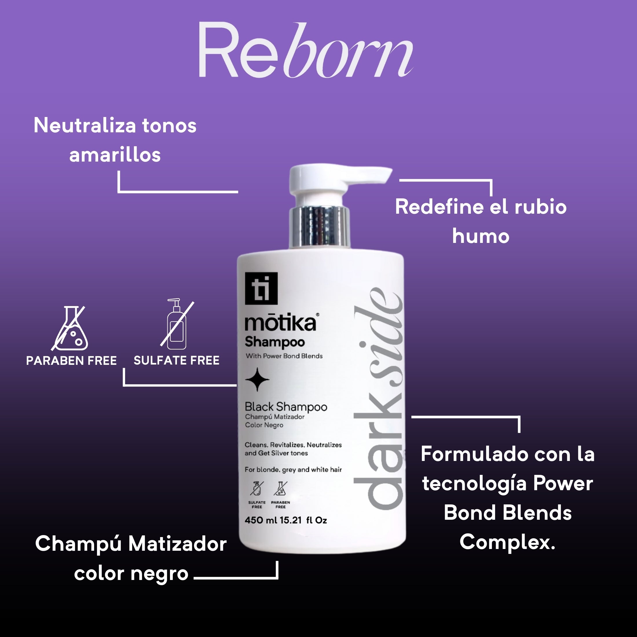 Aplica en cabello mojado, masajea el cuero cabelludo y distribuye hasta las puntas. Deja actuar 3-5 minutos y enjuaga. Para mejores resultados, usa Reborn Bonditioner y Reborn Mascarilla.